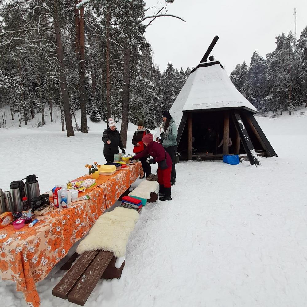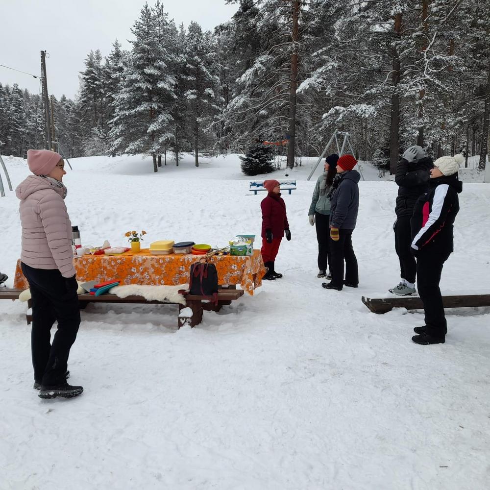 Järjestimme ulkoiluretken Lopen Melkuttimella, jossa kiersimme kävellen ulkoilureitin järven ympäri. Puolivälissä matkaa pidimme evästauon paistaen makkaraa ja nautimme eväistä kauniissa maisemissa.